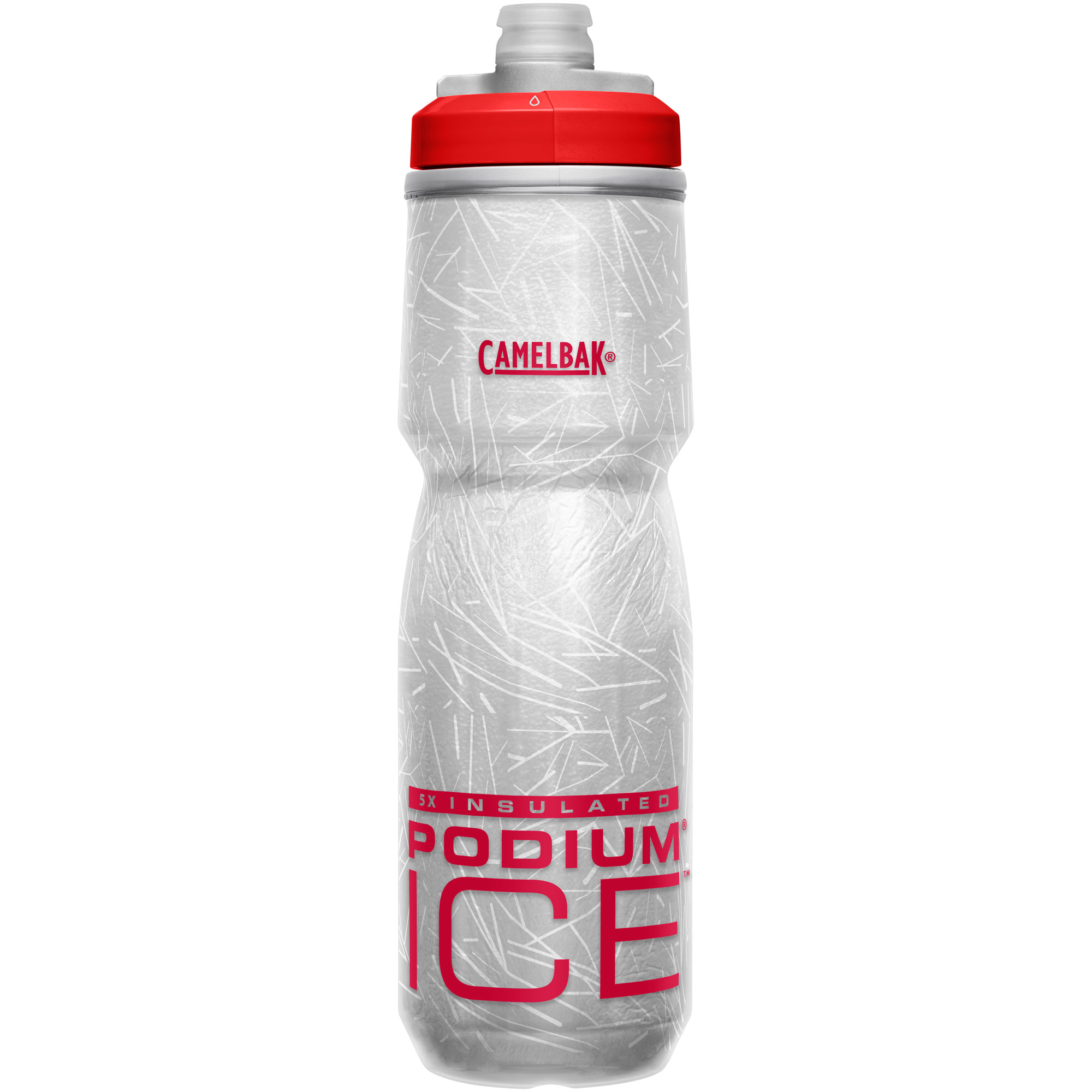 Bidon PODIUM ICE o pojemności 620 ml wykonany został z polipropylenu trustate, z technologią jonów srebra hydroguard, a także z materiałów wolnych od BPA/BPF/BPS. Pierwsza z technologii pozwala skutecznie blokować rozwój bakterii w bidonie, z kolei dzięki drugiej z nich nie chłonie on zapachów ani smaków. Ponadto zastosowana w bidonie izolacja AEROGEL pozwala utrzymać wodę zimną aż o cztery razy dłużej niż zwykle. W bidonie zmodyfikowano ustnik, teraz można go rozłożyć na drobniejsze elementy i precyzyjnie oczyścić w każdych zakamarkach. Do konstrukcji bidonu wykorzystano także specjalną ergonomiczną blokadę. Dzięki niej transport staje się bezpieczniejszy, bez obawy o niekontrolowaną utratę ulubionego napoju. Bidon posiada nowy, bardziej ergonomiczny kształt, ułatwiający wyciąganie bidonu z koszyka.