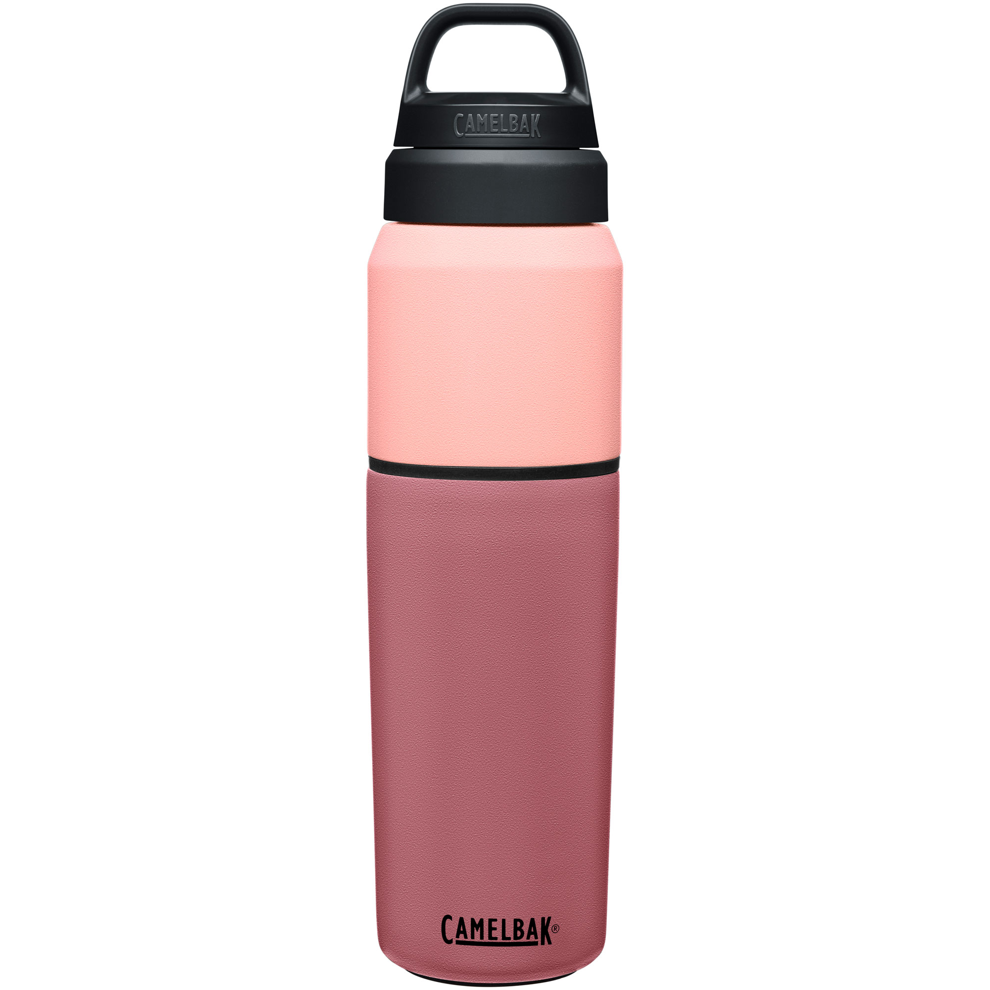 MultiBev™ to innowacyjne połączenie dużej butelki termicznej oraz mniejszego kubka termicznego w jednym produkcie. Do ściany dużej butelki MultiBev™ został przykręcony mniejszy kubek CamelBak, dzięki czemu jeden produkt daje nam możliwość jednoczesnego korzystania przez 2 osoby. Dodatkowo, w rozkręcanej nakrętce butelki znajdziemy silikonową zatyczkę mniejszej butelki. Po wyjęciu zatyczki, w nakrętce uzyskujemy miejsce do przenoszenia drobnych przedmiotów, jak na przykład liście herbaty lub kawę.