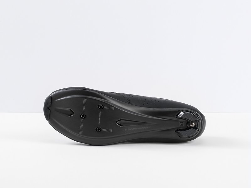 Sztywną, wyprofilowaną podeszwę szosowego buta Velocis tworzy mieszanka włókna węglowego i szklanego. Sztywność 10/14 według wskaźnika sztywności Bontragera gwarantuje efektywne przenoszenie mocy przy mniejszym zmęczeniu, szczególnie podczas wielokilometrowych przejażdżek. Lekka podeszwa posiada wyprofilowany kanał wspierający odprowadzanie wody, gdy leje jak z cebra. Obcas buta jest wymienny. Jeszcze mocniej pociągniesz pedałem dzięki specjalnie uformowanej okolicy pięty stabilizującej ścięgno Achillesa i mocno trzymającej but szczególnie podczas sprintów czy okrutnych podjazdów.