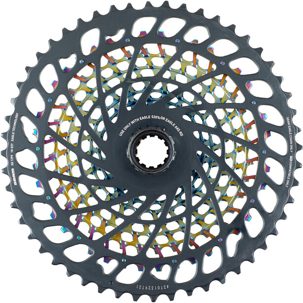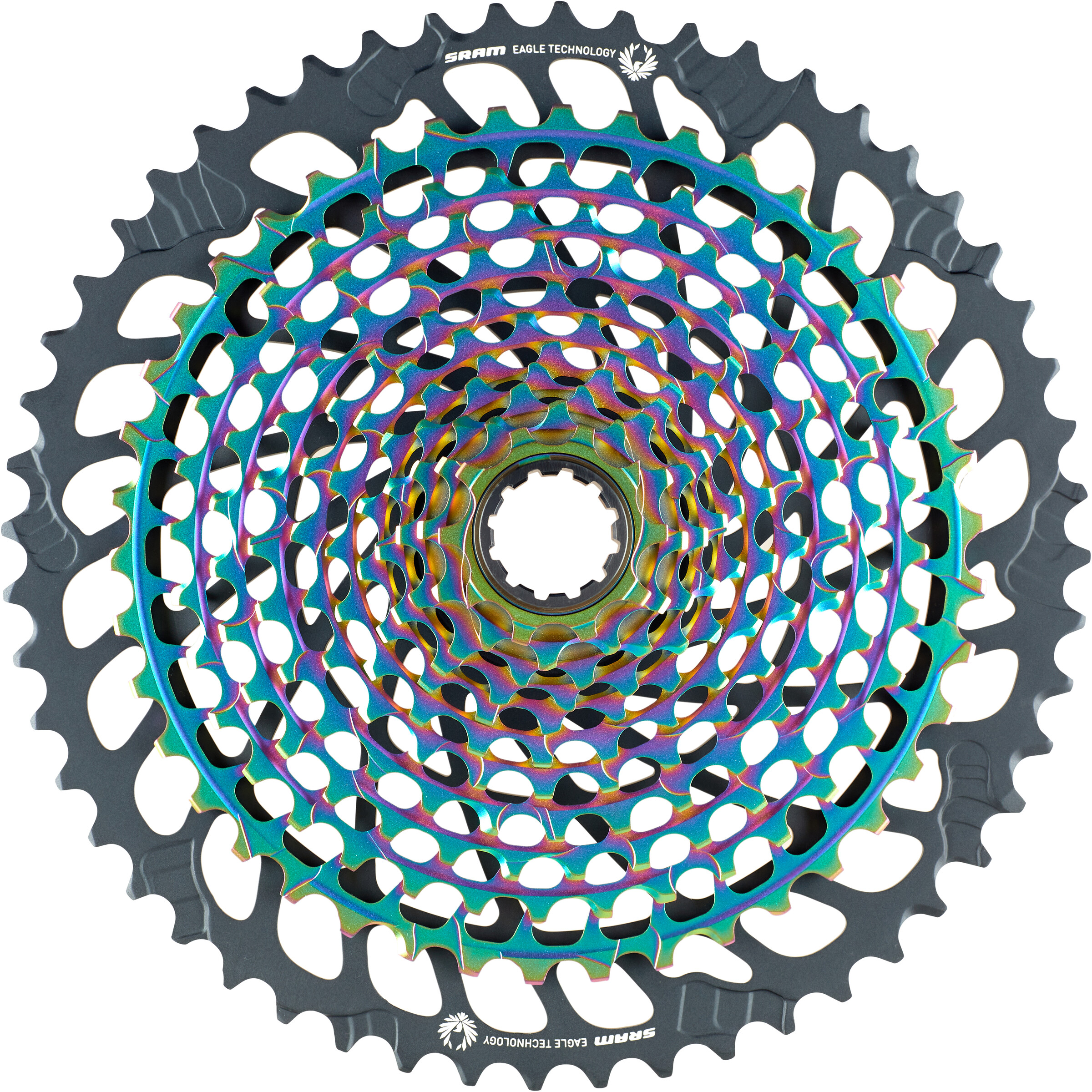 Kaseta SRAM XG-1299 XX1 Eagle przygotowana została przez specjalistów dla prawdziwych zawodowców i osób, dla których MTB jest życiową pasją. To sprzęt, który nie zawiedzie w najtrudniejszych momentach, a dzięki zwiększonemu do 520% zasięgowi pozwala na osiąganie znacznie wyższych prędkości maksymalnych, niż w przypadku innych kaset. Kaseta rowerowa SRAM XG-1299 XX1 Eagle jest wstecznie kompatybilna, dzięki czemu nie musisz wymieniać wszystkich komponentów, żeby zmodernizować swój rower. Doskonale współpracuje również z zaawansowanymi, elektronicznymi układami SRAM XX1 Eagle AXS. Kaseta do roweru SRAM XG-1299 XX1 Eagle jest kompatybilna z systemem SRAM XD i funkcjonuje w technologii X-Dome, która zapewnia jej wysoką wytrzymałość, niską wagę i szybkie oczyszczanie się z zanieczyszczeń. Warto też zwrócić uwagę na atrakcyjny design, który jest nie tylko stylowy, ale również unikalny.