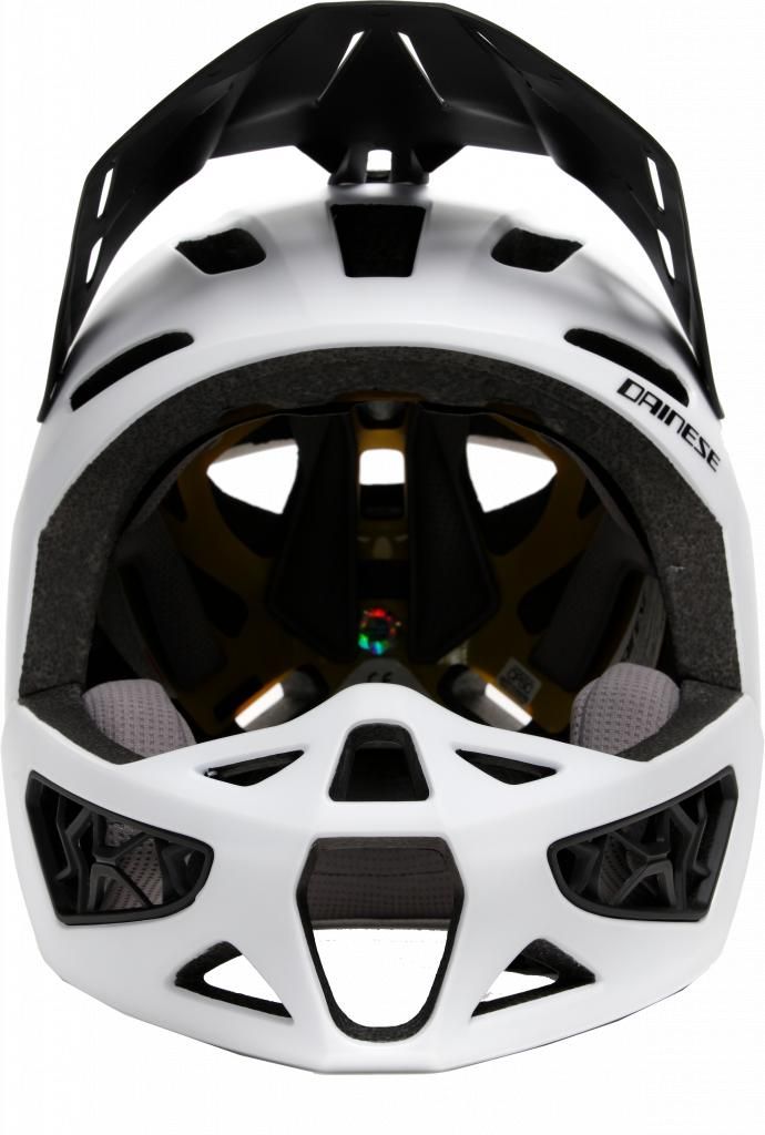 30 wlotów powietrza zapewnia dobrą wentylację: 22 otwory wentylacyjne w środkowej części i 8 wylotów powietrza z tyłu głowy gwarantują ciągły przepływ powietrza i optymalną wymianę ciepła w każdej fazie aktywności, od najbardziej ekstremalnych zjazdów po najbardziej intensywne ruchy pedałowania i podjazdów. Ten komfort uzupełnia miękka, termoformowana wyściółka wewnętrzna z wykończeniem antybakteryjnym i antyzapachowym, która pozwala skupić się tylko na torze i pedale bez ingerencji. Widoczność jest idealna na każdej trasie i w każdych warunkach dzięki szerokiemu polu widzenia, konstrukcji osłony podbródka, która poprawia widoczność nawet w najbardziej wymagających przejściach oraz elastycznemu i regulowanemu sztywnemu daszkowi, który można obsługiwać jedną ręką, nawet w rękawiczkach. Ponadto kształt skorupy został zaprojektowany tak, aby pomieścić gogle, gdy nie są używane i jest idealnym uzupełnieniem gogli MTB Dainese Linea Goggles. System magnesów Fidlock®, który można również obsługiwać w rękawiczkach, umożliwia szybką i bezpieczną kontrolę zablokowania