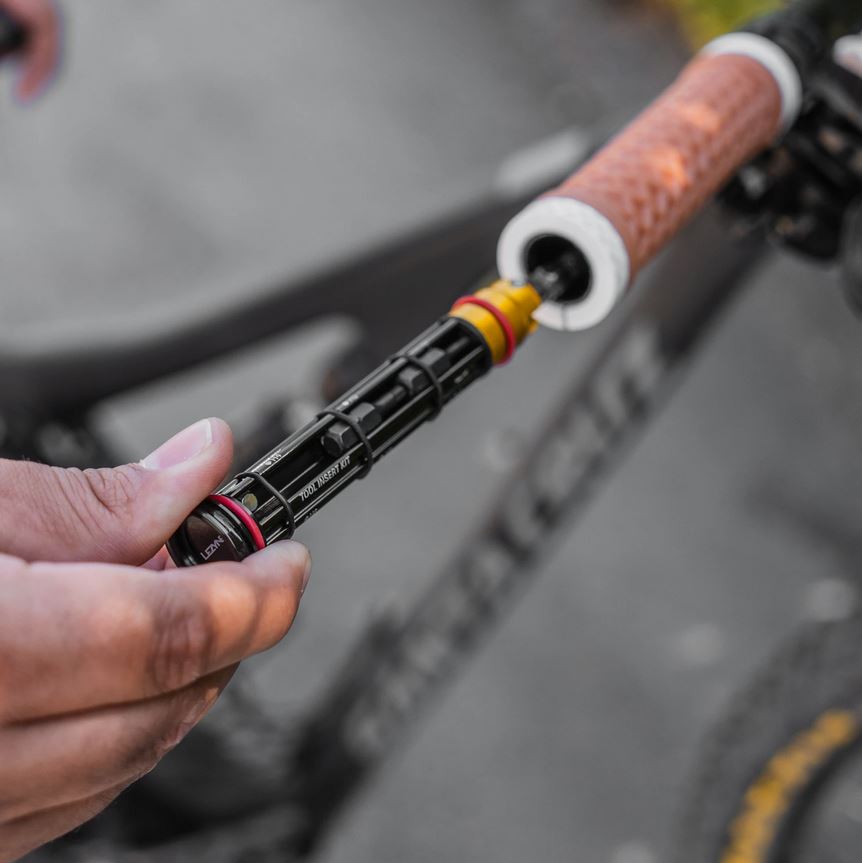 Zestaw Dual Insert Kit to najlepszy ukryty zestaw narzędzi do rowerów górskich, który zawiera parę naszych innowacyjnych narzędzi, które dyskretnie i bezpiecznie chowają się w otworach kierownicy: zestaw Tubeless Insert Kit i zestaw Tool Insert Kit.