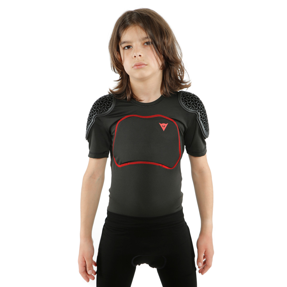 Linia Dainese Scarabeo oferuje najmłodszym kolarzom technologię opracowaną przez wielkich mistrzów MTB i wykorzystywaną w mistrzostwach świata. Całe bezpieczeństwo profesjonalistów, aby chronić sportowców jutra. Scarabeo Pro Tee to ochronna, lekka i oddychająca koszulka odpowiednia do wszystkich dyscyplin MTB. Wyposażony jest w miękkie ochraniacze Pro-Shape Scarabeo na ramionach, klatce piersiowej i plecach, zapewniające doskonałą swobodę ruchów i wentylację. Konstrukcja ochraniaczy Pro-Shape Scarabeo jest inspirowana geometrią materiałów auksetycznych występujących w naturze, które po uderzeniu lub naprężeniu rozszerzają się jednocześnie we wszystkich kierunkach, zwiększając obszar krycia. W połączeniu z wysoce oddychającym materiałem struktura, otwarta na 55% powierzchni pokrycia, zapewnia lekkość i lepszą wentylację na każdym etapie jazdy, nawet w najgorętsze dni. Ochraniacze pleców i klatki piersiowej można całkowicie zdjąć, co zapewnia większą wszechstronność, pozostawiając RIDEROWI swobodę wyboru, ułatwiające pranie. Zamek błyskawiczny jest umieszczony z boku, aby zapewnić maksymalne wydłużenie ochraniacza klatki piersiowej. Długość koszulki pozwala na schowanie jej do spodni, co zapewnia dodatkową stabilność. Koszulka Scarabeo Pro jest dostarczana w komplecie z innowacyjnym, opatentowanym systemem Dainese RIBBO. Poprzez odcięcie specjalnych wiązań, które kontrolują elastyczność tkaniny, obwód ubrania można stopniowo zwiększać wraz ze wzrostem młodego jeźdźca. Dzięki temu może być używany przez kilka sezonów. Zabawa dziecka staje się poważna.