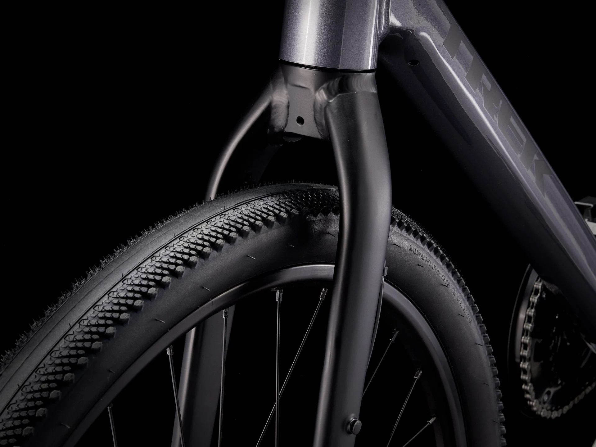 Lekka rama z aluminium z elegancko poprowadzonymi wewnętrznie przewodami, uchwytami na bagażnik i błotniki, szerokie koła 650b i opony 50c dla sprawności i komfortu w zróżnicowanym terenie, niezawodny napęd Shimano 2×9 o szerokim zakresie przełożeń, dzięki któremu nigdy nie musisz pedałować za ostro lub za lekko, wygodne ergonomiczne chwyty oraz mocne, hydrauliczne hamulce tarczowe dla pewnego hamowania niezależnie od pogody.