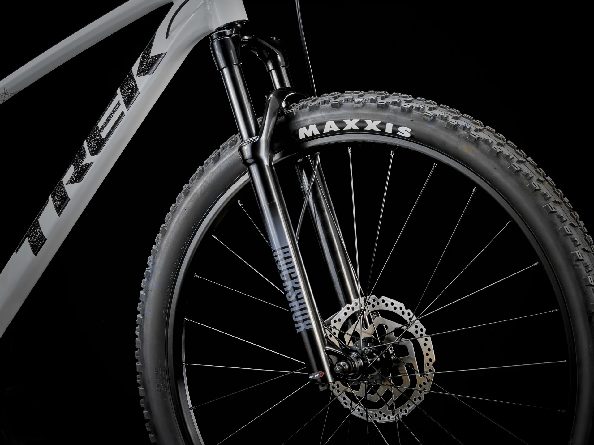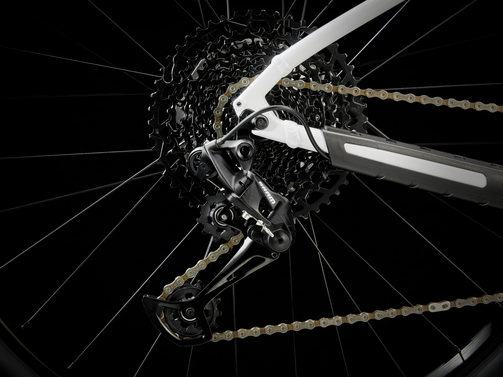 Lekka rama z wewnętrzną linką przerzutki i prowadzeniem kabla przewodu hamulca, pozwalający na większą płynność widelec RockShox Judy z blokadą, hydrauliczne hamulce tarczowe Shimano i koła Bontrager. Prosty napęd 1x nie ma przedniej przerzutki, co ogranicza liczbę elementów osprzętu i ułatwia jazdę. Nie martw się. Dzięki kasecie z szerokim zakresem 11–46 nie zabraknie Ci przełożeń podczas ostrych podjazdów i szybkich zjazdów.