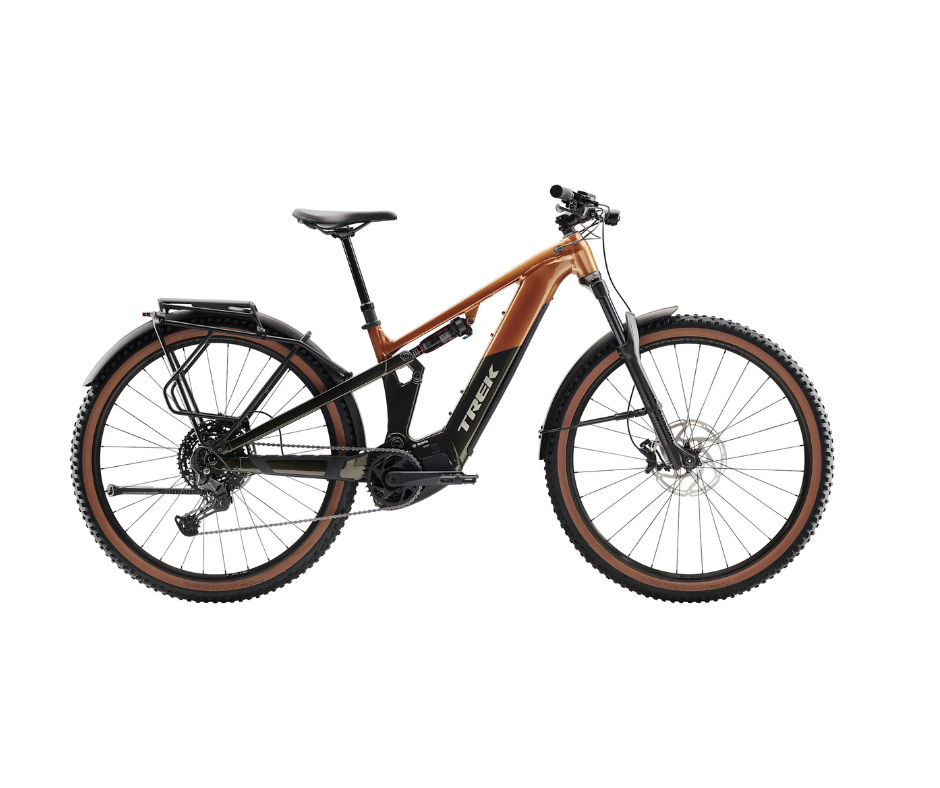 Rama Alpha Platinum Aluminium z silnikiem Bosch Performance Line CX (85 Nm, 250 W), wymienny zintegrowany akumulator PowerTube RIB 2.0 o pojemności 600 Wh oraz kontroler Purion 200. Zawieszenie o skoku 130 mm w postaci widelca RockShox Recon Silver RL ze sprężyną Solo Air oraz tłumieniem Motion Controli z przodu oraz 120 mm z tyłu, dzięki damperowi RockShox Deluxe Select. Gotowe na montaż bezdętkowy koła z odpornymi na przebicia oponami 2,4”, płynnie zmieniający przełożenia napęd Shimano CUES, sztyca podsiodłowa Bontrager Line i hydrauliczne hamulce tarczowe. Ponadto lampki, błotniki i bagażnik tylny są zamontowane fabrycznie.