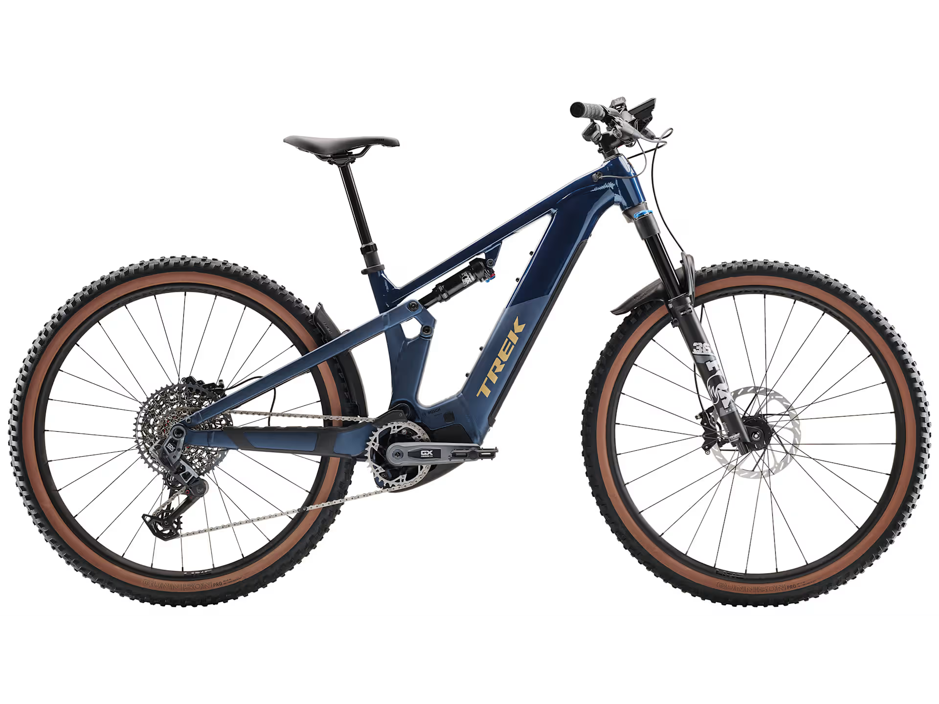 Rama Alpha Platinum Aluminium z silnikiem Bosch Performance Line CX (85 Nm, 250 W), wymienny zintegrowany akumulator PowerTube RIB 2.0 o pojemności 800 Wh oraz kontroler Purion 200. Zawieszenie o skoku 130 mm w postaci widelca Fox Rhythm 36 oraz 120 mm z tyłu dampera FOX Float Rhythm. Gotowe na montaż bezdętkowy koła z odpornymi na przebicia oponami 2,4”, płynnie zmieniający przełożenia napęd SRAM GX Eagle AXS T-Type, regulowana sztyca podsiodłowa Bontrager Line i hydrauliczne hamulce tarczowe.