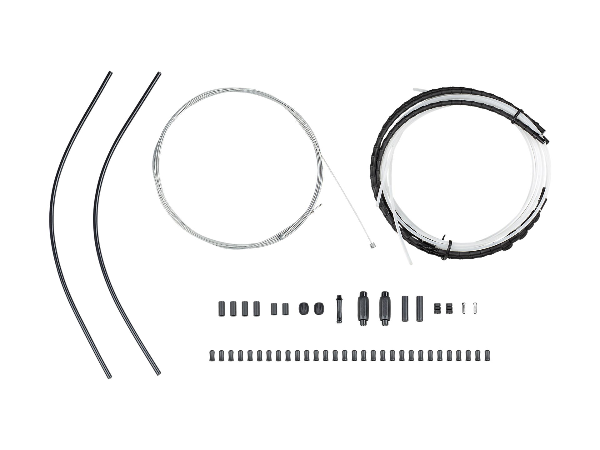 Zestaw zawiera nasadki przerzutek XXX, wewnętrzny napinacz linek Pro, zabezpieczenia ramy i końcówki linek